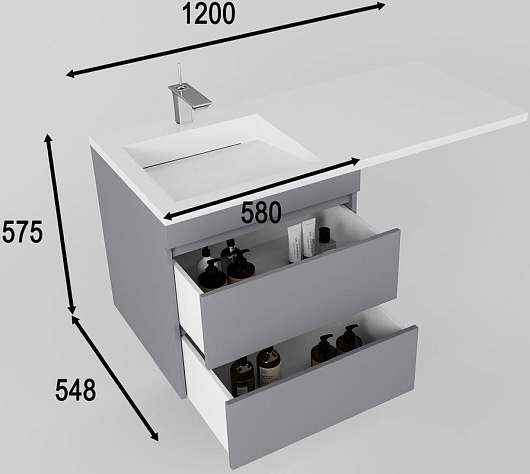 Style Line Тумба с раковиной под стиральную машину Леон 120 L подвесная Люкс Plus серая матовая