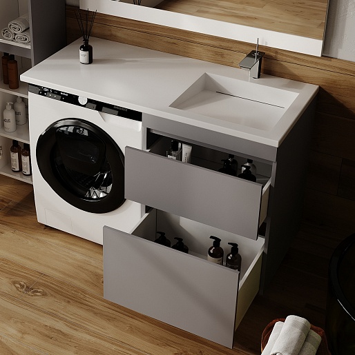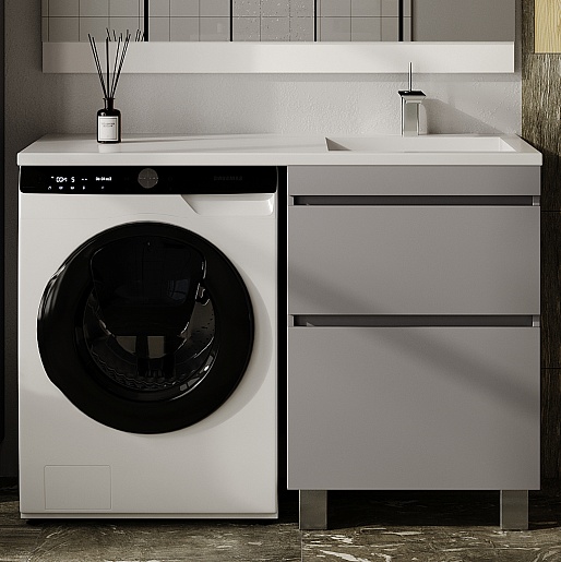 Style Line Тумба с раковиной под стиральную машину Леон 120 R Люкс Plus серая матовая