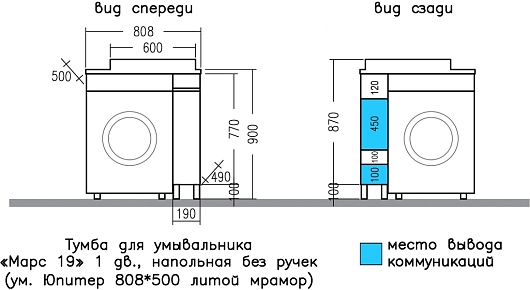 - Раковина из литьевого мрамора с правым крылом для установки над стиральной машиной.