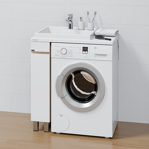 - Раковина из литьевого мрамора с правым крылом для установки над стиральной машиной.