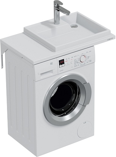 - Раковина из литьевого мрамора с левым крылом для установки над стиральной машиной.