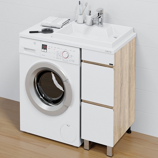 СанТа Тумба с раковиной под стиральную машину Марс 90 R 2 ящика белая/янтарное дерево