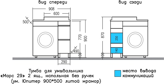 Напольная тумба с раковиной под стиральную машину Санта Марс 90 R - арт. 700399 / 900129 / 900123.