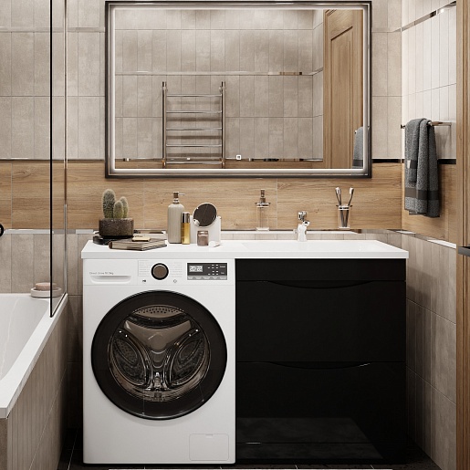 Водолей Тумба с раковиной под стиральную машину Смайл 130 R черная