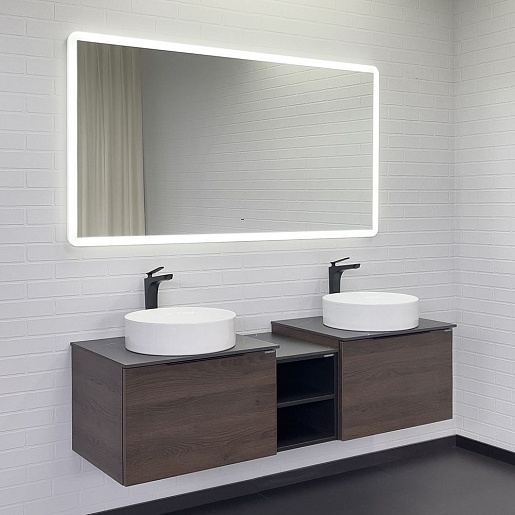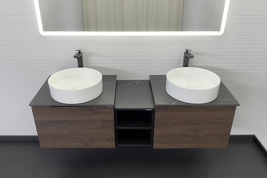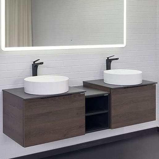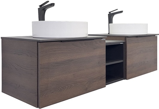 - Тумба с двумя открытыми нишами и керамогранитной столешницей.