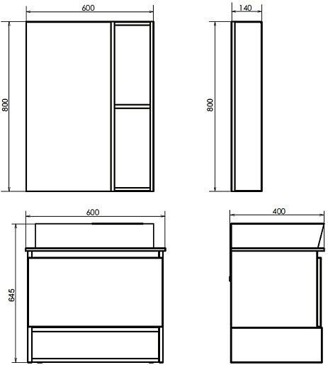 - 1 выдвижной ящик, 1 открытая ниша.