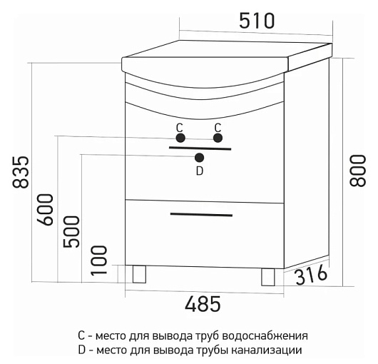 Mixline Тумба с раковиной Радуга 50 белая/чёрная