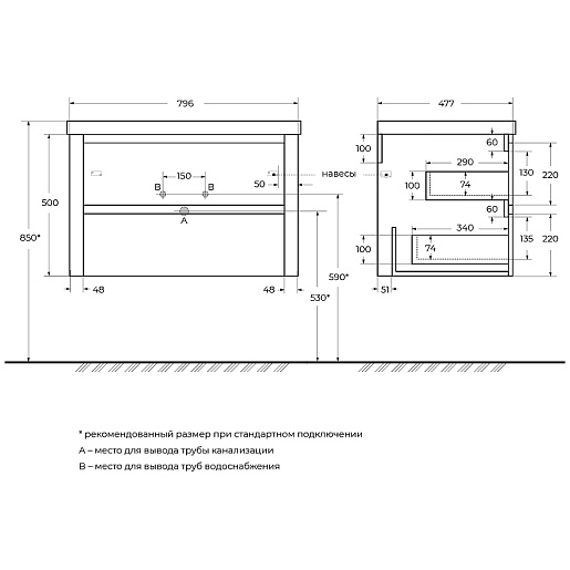 Тумба под раковину Relax 80 подвесная bianco lucido
