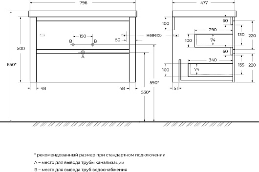 - 2 выдвижных ящика.