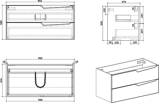 - Материал корпуса/фасада: МДФ, ящик из дерева / МДФ.