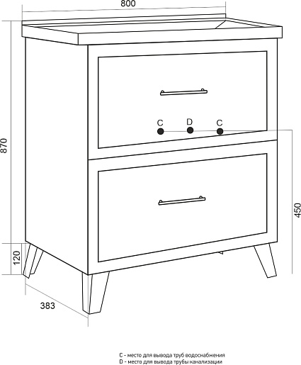 Комплектация: тумба, раковина, крепеж, ножки.