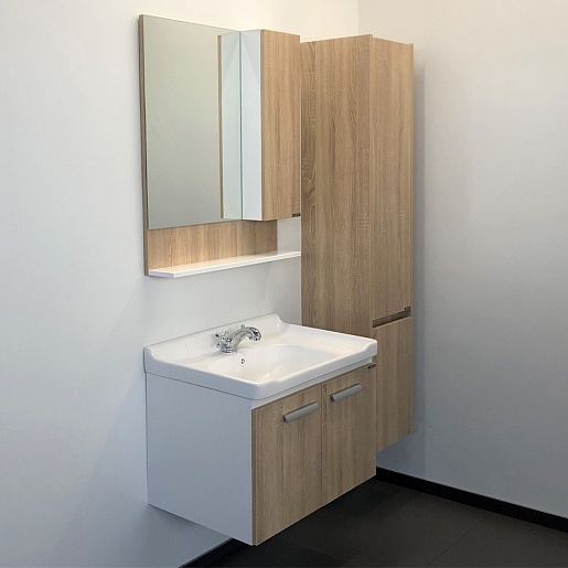 Comforty Тумба с раковиной Рига 70 подвесная дуб сонома/белая