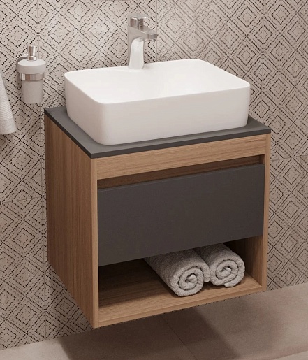 Teymi Тумба с раковиной Ritta 55 дуб эврика/графит матовый подвесная T60523 раковина T50310