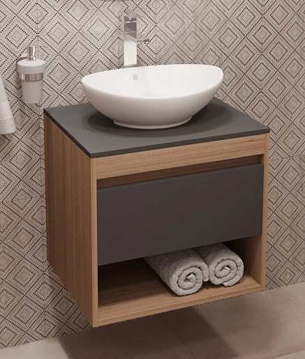 Teymi Тумба с раковиной Ritta 55 дуб эврика/графит матовый подвесная T60523 раковина T50503