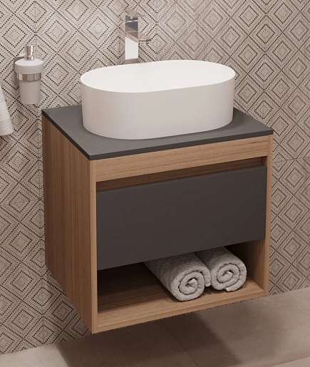 Teymi Тумба с раковиной Ritta 55 дуб эврика/графит матовый подвесная T60523 раковина T50606