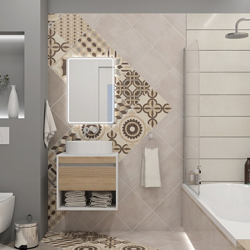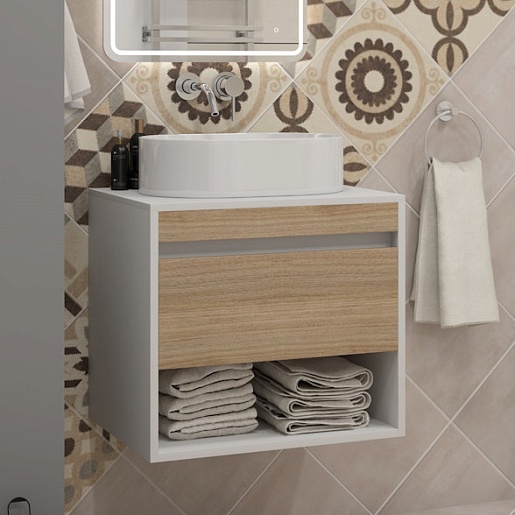 Подвесная тумба с накладной раковиной Teymi Ritta 55 Lori 50 белый/дуб - арт. T60537 / T50502.