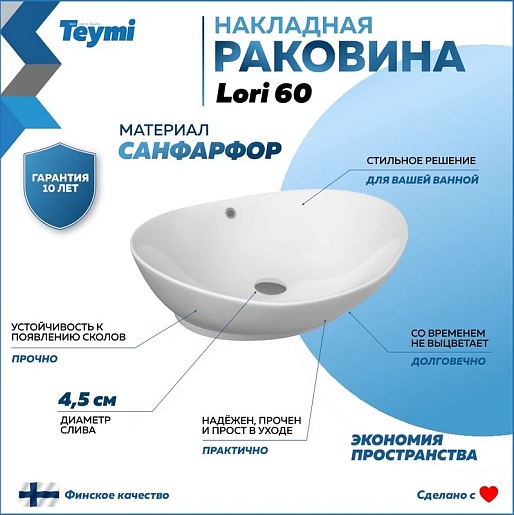 Мебельная раковина накладная Lori 60 белая T50503