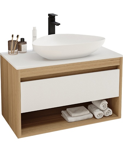 Teymi Тумба с раковиной Ritta 85 дуб эврика/белый матовый T60531 раковина T50802