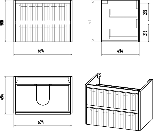 - 2 выдвижных ящика с направляющими скрытого монтажа.