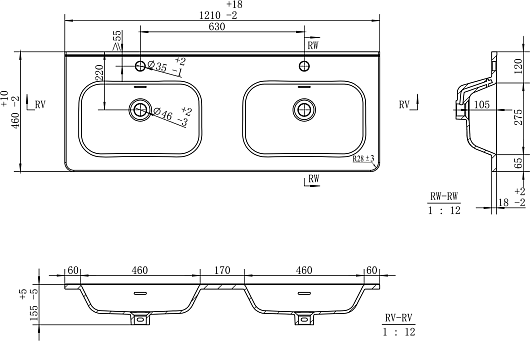 Мебельная раковина Onda 120 с двумя чашами