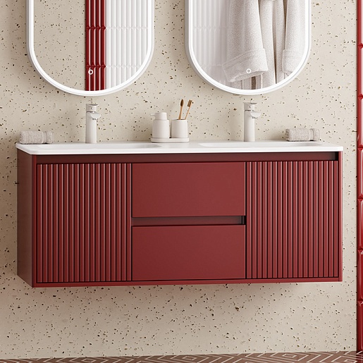 Подвесная тумба с раковиной с двумя чашами Brevita Wine 120 бордовая - арт. Win-09120-04-01-2Я / B-OND120-02.