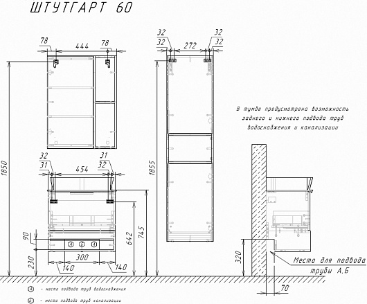 Подвесная тумба с раковиной Comforty Штутгарт 60 - арт. 00004151039CF.