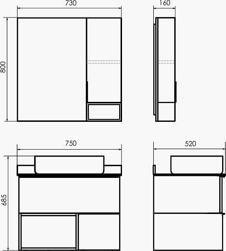 Подвесная тумба с раковиной Comforty Штутгарт 75 - арт. 00-00001884CF.