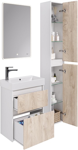 Dreja Тумба с раковиной Slim 55 подвесная белая/дуб кантри