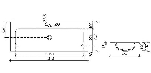- ШхГ: 121x45,7 см.