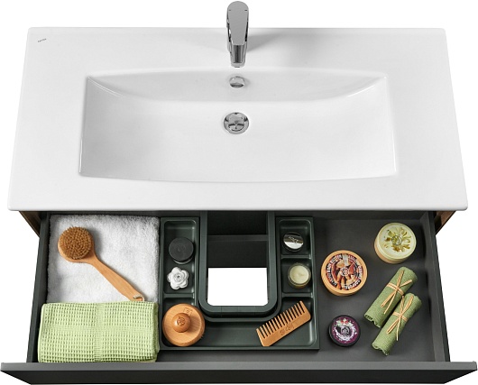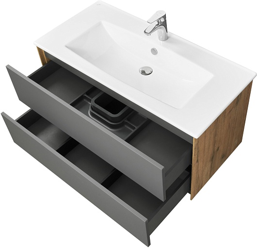 Акватон Тумба с раковиной Сохо 100 подвесная дуб веллингтон/графит софт