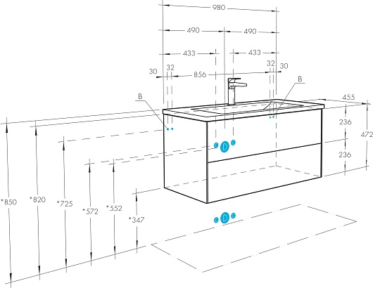 Тумба с раковиной Акватон Сохо 100 - арт. 1A258201AJA00 / 1WH501627.