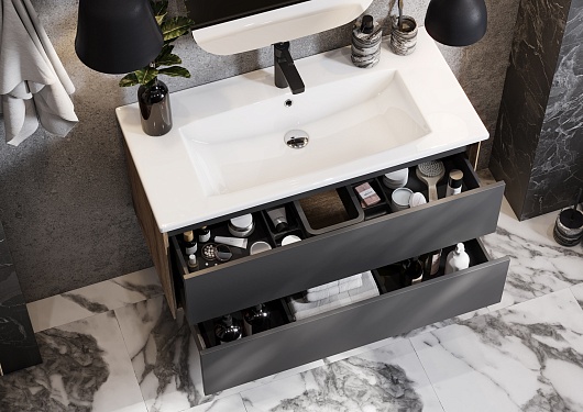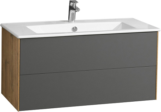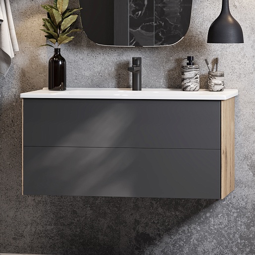 Тумба под раковину Сохо 100 подвесная дуб веллингтон/графит софт
