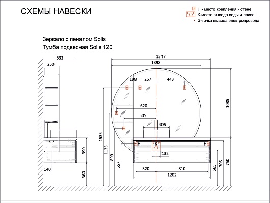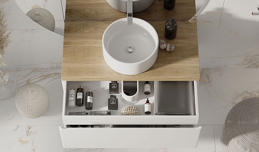 Jorno Тумба с раковиной Solis new 100 белая подвесная со столешницей из массива бука