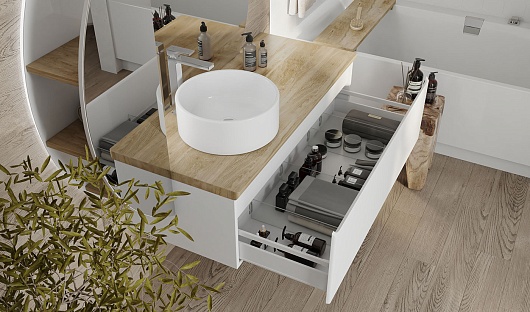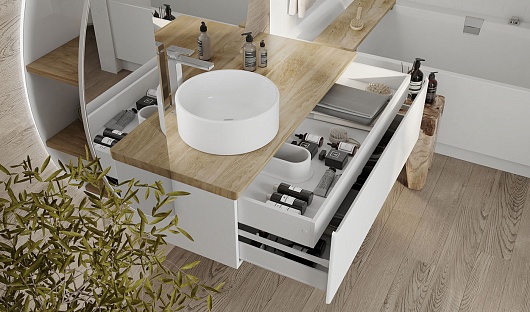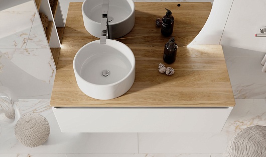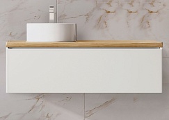 Jorno Тумба с раковиной Solis new 120 белая подвесная со столешницей из массива бука