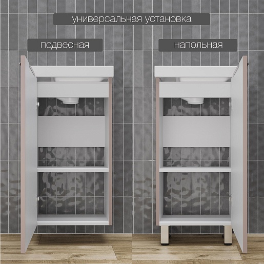 В комплекте: тумба, умывальник, крепеж, ножка (4 шт.).