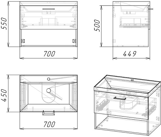 Подвесная тумба с раковиной Stella Polare Ундина 70 - арт. SP-00001060 / 4627173210171.