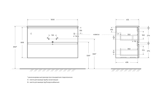 Тумба под раковину Uno 100 подвесная Темно-Серый матовый