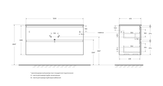 Мебельная раковина 121/46 BB-8099-120