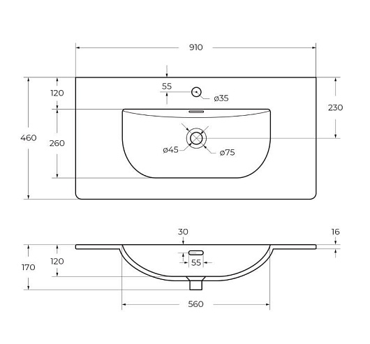 - Керамическая раковина BB-8099-90, 910x460x170.