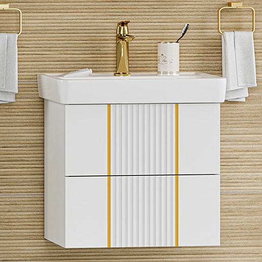 Тумба под раковину Vega 60 подвесная белая/золото