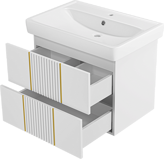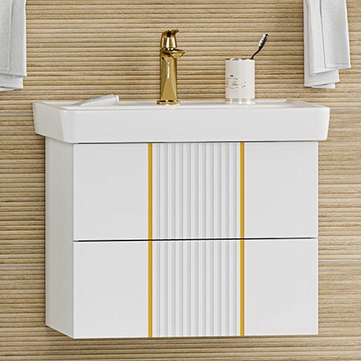 Brevita Тумба с раковиной Vega 70 подвесная белая/золото