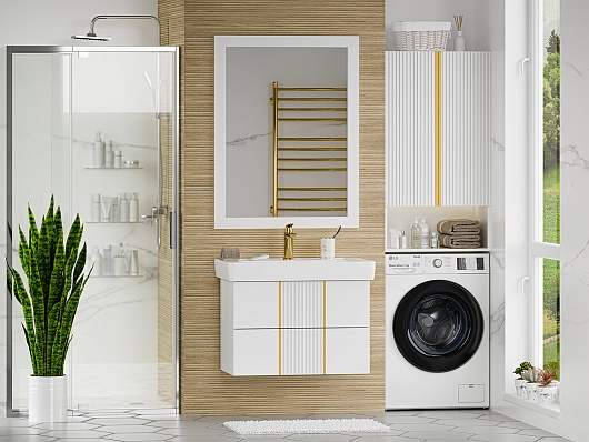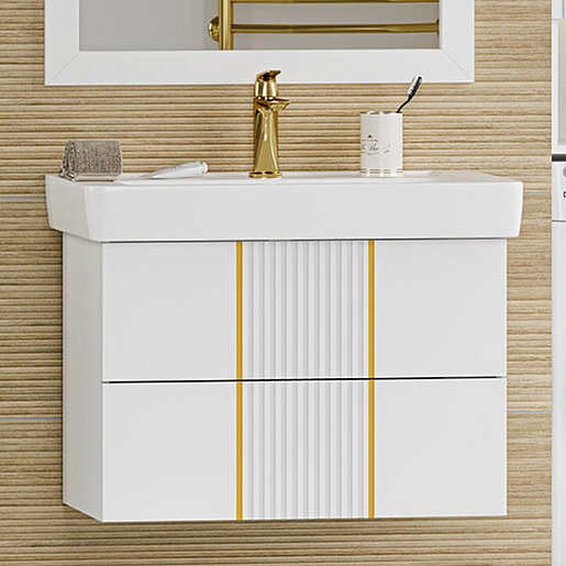 Brevita Тумба с раковиной Vega 80 подвесная белая/золото
