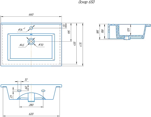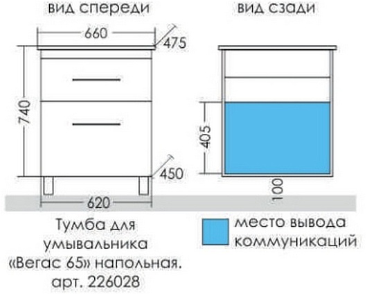 Напольная тумба с раковиной Санта Вегас 65 - арт. 226028 / Оскар65.