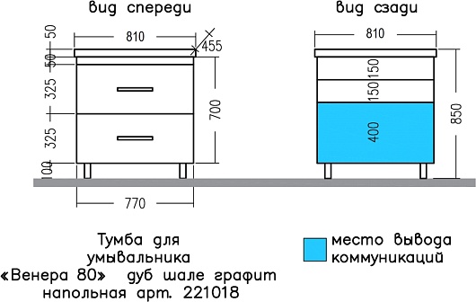 Тумба под раковину Венера 80 дуб шале графит