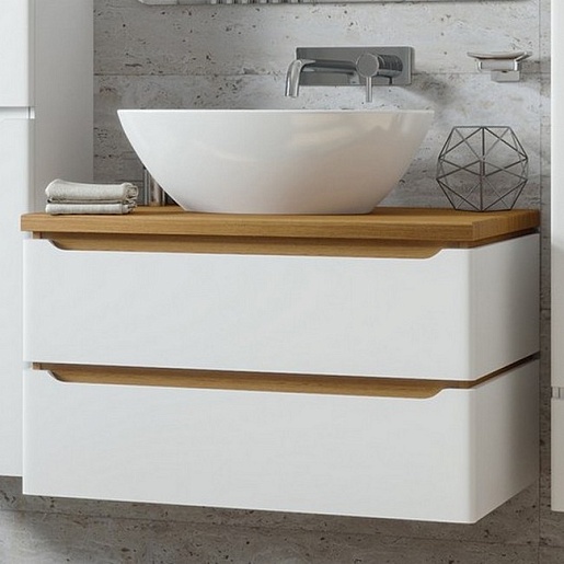 Тумба под раковину Виктория 80 подвесная белая софт/дуб светлый