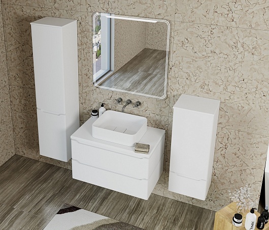Тумба под раковину Виктория 80 подвесная белая софт