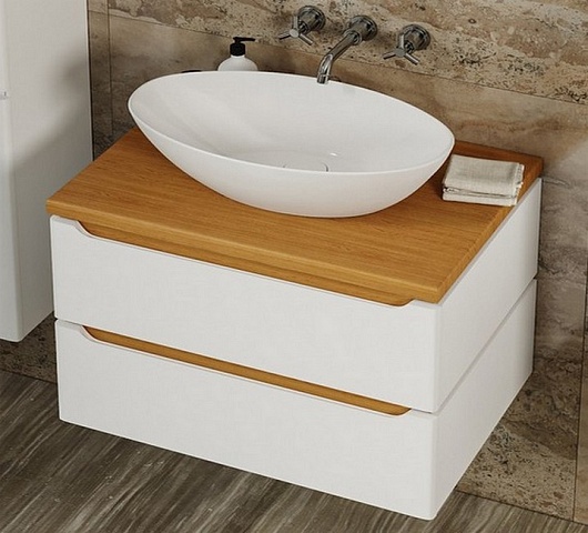 Тумба под раковину Виктория 90 подвесная белая софт/дуб светлый