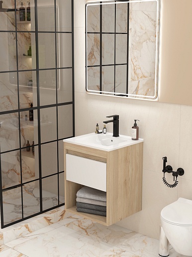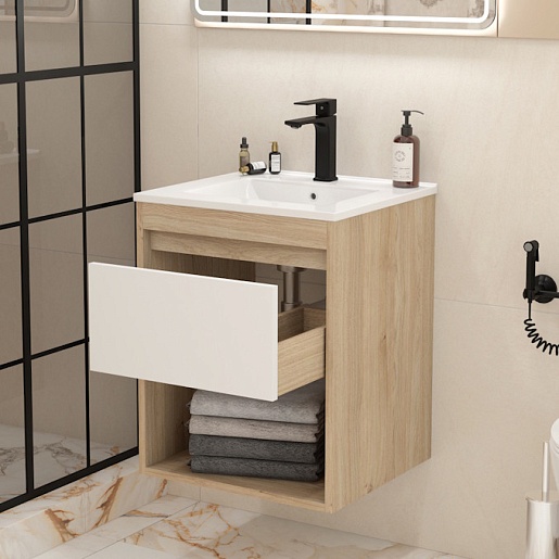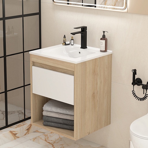 Подвесная тумба с раковиной Teymi Vitra 50 дуб/белый - арт. T60401 / T60406 / T51000.