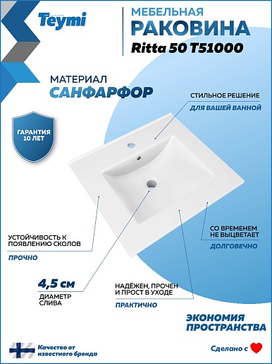 Мебельная раковина Ritta 50 белая