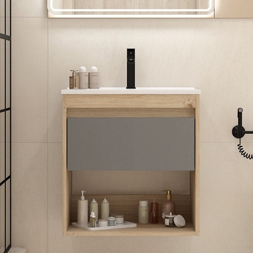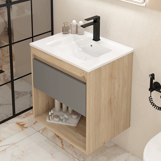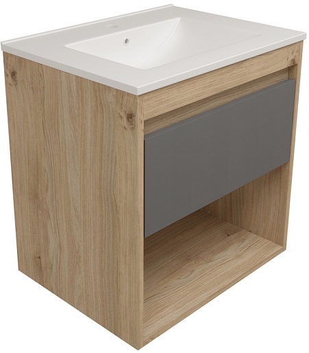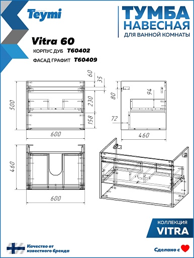 Подвесная тумба с раковиной Teymi Vitra 60 дуб/графит - арт. T60402 / T60409 / T51002.